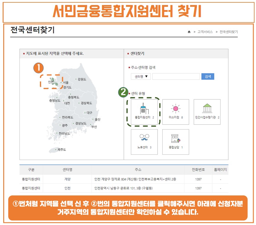 햇살론17은 은행을 통해 직접 신청이 어렵고 서민금융통합지원센터를 통해 신청을 하셔야 합니다. 지역마다 센터가 있지만 전국적으로 많은 편이 아니기 때문에 홈페이지에서 위치와 주소를 확인하시고 방문예약을 하셔야 합니다.