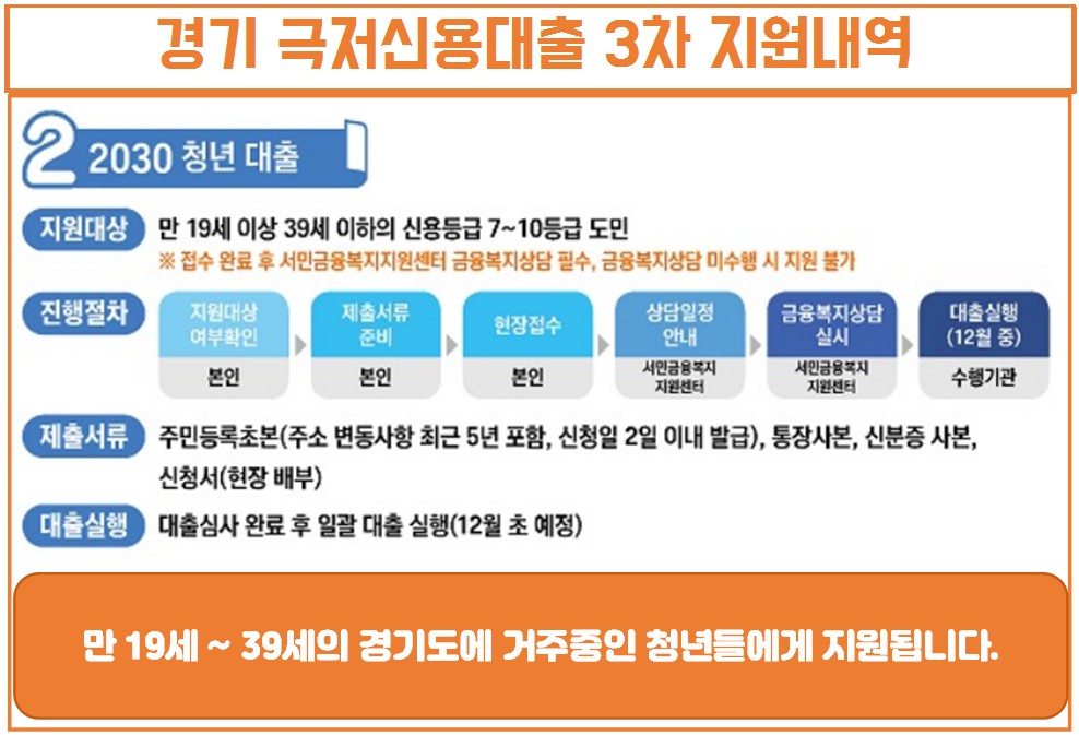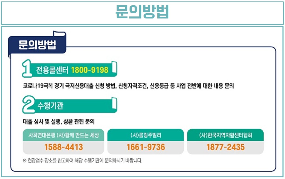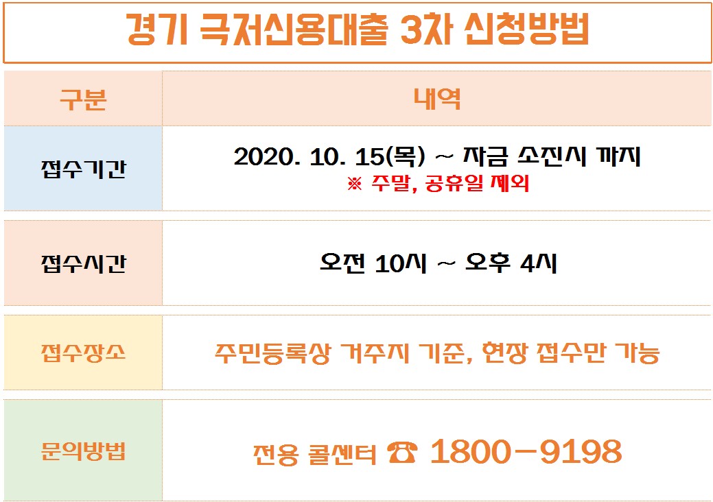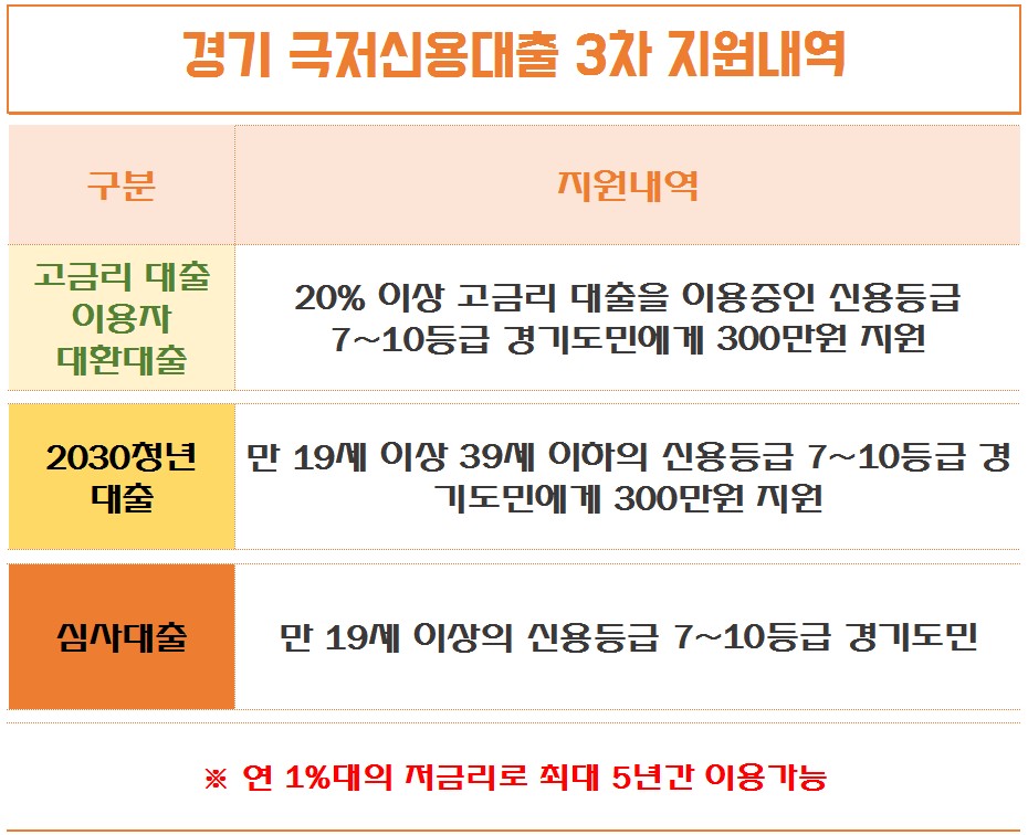 접수처와 문의방법 등을 잘 확인하셔서 도움이 경기도에 거주중이신 저신용자 분들은 꼭 신청해보시기 바랍니다. 대출상환기간도 5년 이어서 상환하시는데 부담도 적습니다.