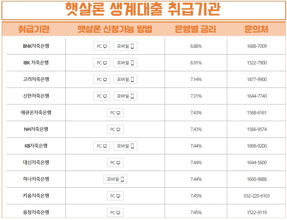 15개의 취급은행을 통해 신청이 가능하며, 서민금융진흥원 콜센터 ☎1357 또는 은행별 콜센터로 궁금한 사항은 문의를 하시면 됩니다.