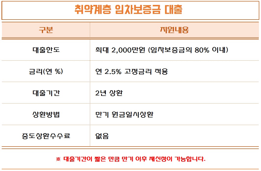 대출한도가 최대 2천만원이라는 점이 다소 아쉬운 부분입니다. 금리는 연 2.5% 내외로 매우 저렴한 편이며, 대출기간은 2년밖에 안되지만 연장이 가능합니다.