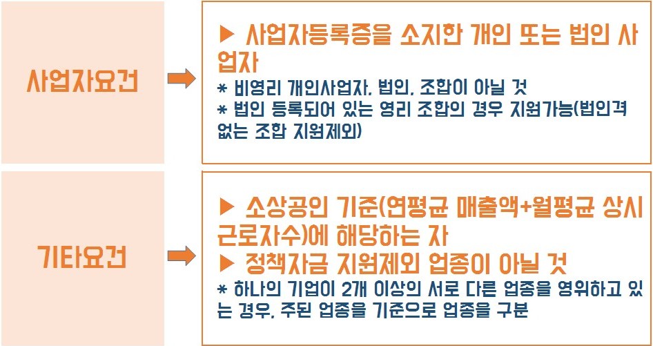 개인사업자 뿐만 아니라 법인 사업자도 CB등급 7~10등급이라면 신청이 가능합니다. 단, 연평균 매출액과 월평균 상시근로자수의 기준을 충족해야 합니다.