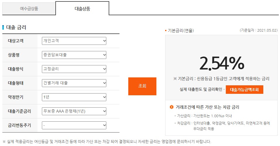 금리를 적용해보니 2021년 5월 2일 기준 연 2.54%가 나오지만 개인마다 금리가 차등 적용되기 때문에 실제 신청시 3~4%내로 적용이 될 수 있습니다. 중도상환시 수수료가 발생하고, 연체이자율도 최고 11%까지 적용이 된다고 하니 유념해서 이용하셔야 합니다.