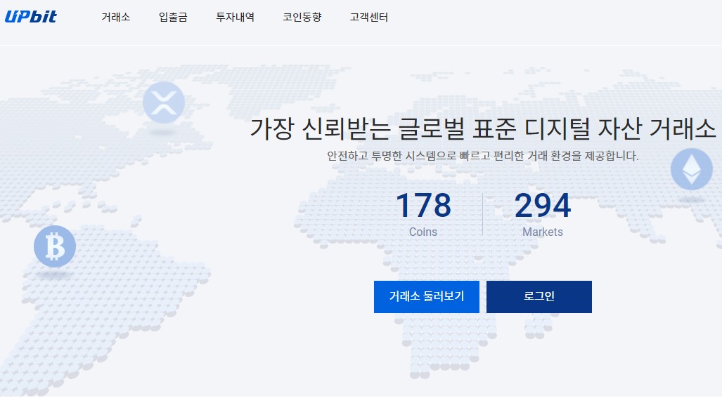 업비트는 홈페이지 메인에서도 확인할 수 있듯이 포스팅 발행일 기준으로 178개의 코인을 거래할 수 있어 앞서 소개해드린 거래소들 중 가장 다양한 상장코인을 보유중입니다.